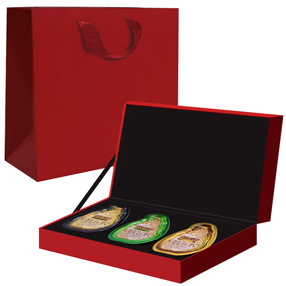 - Hộp Da & Hai Ly Thuỷ Tinh Cao Cấp